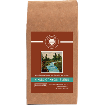 Kings Canyon Blend is a rich, medium roast caffeinated Brazilian coffee that is ground to perfection and includes the powerful immune-supporting supplement known as Coriolus Versicolor. This coffee is roasted, ground, and shipped much faster than most coffees found in stores and at your local coffee house, ensuring what we believe to be the freshest coffee flavored experience you can have. Every hand-packed bag is filled with the exceptional coffee you deserve. You will be surprised by how smooth and light it is on your palate!