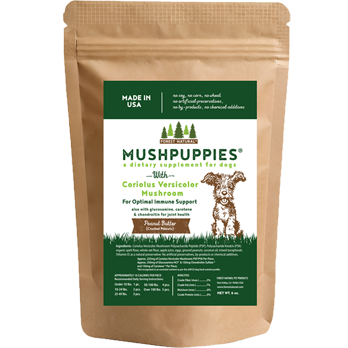 Standard grade immune assistance for your pet. Our Forest Natural Brand has developed a tasty supplement with the immune-supporting Coriolus Versicolor mushroom. Includes Glucosamine, Carotene, and Chondroitin to support bone and joint function. The Coriolus Versicolor Mushroom is an all-natural botanical found to help support the body’s own immune system. It is widely known that the immune system is the body’s first defense against the smallest of issues to the most complicated. There are hundreds of studies worldwide conducted on Coriolus Versicolor on its immune-supporting properties, including such notable institutions as Sloan Kettering Center of New York, MD Anderson Center of Texas, and one completed by the University of Pennsylvania School of Veterinary Medicine. We have been providing our proprietary blend of Coriolus Versicolor for over ten years for both humans and pets. Our process ensures a highly potent strain of Coriolus Versicolor, harvested at the mycelia stage (not the fruited body), and ensures the highest quality of polysaccharide peptide (PSP) and polysaccharide krestin (PSK).
